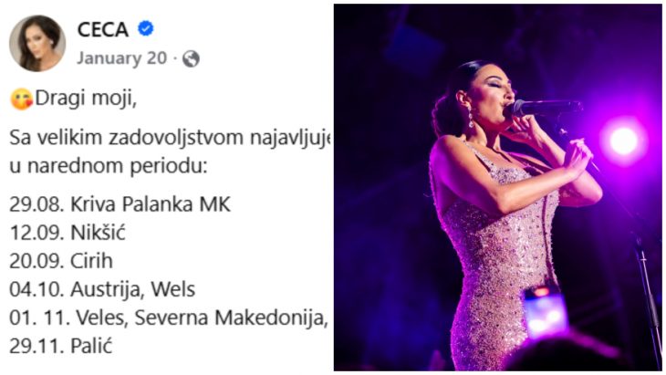 Цеца ќе пее во Крива Паланка (Македонија) и во Велес (Северна)